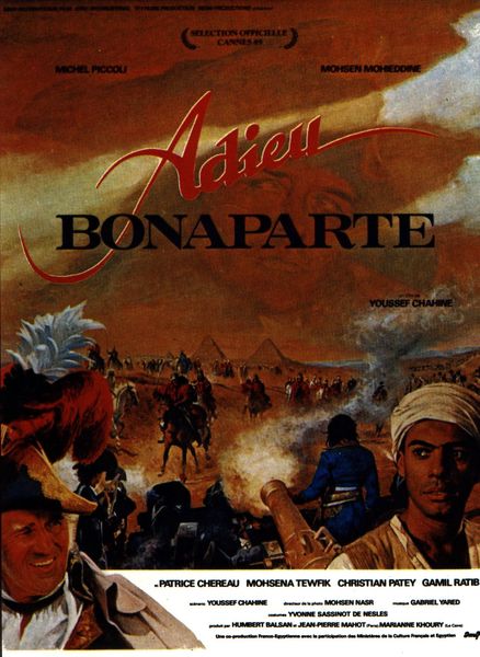 Sortie du film Adieu Bonaparte avec Michel Piccoli, Mohsen Mohieddine, Patrice Chéreau, Mohsena Tewfik, Christian Patey , réalisé par Youssef Chahine.