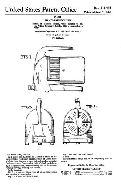 Compresseur de la marque The DeVilbiss Co. , designé par Harold R. Gamble.