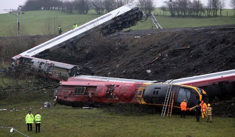 Accident Déraillement spectaculaire en Grande-Bretagne qui reliait Londres à Glasgow. Alors que la locomotive a déraillé à 145 km/h, une seule personne a perdu la vie.