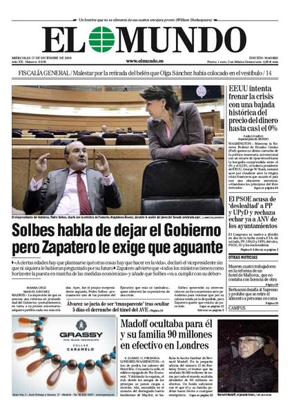 El Mundo - - Solbes habla de dejar el Gobierno pero Zapatero le exige que aguante -