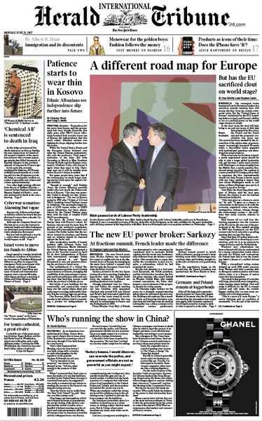 Herald Tribune - - A different road map for Europe Blair passes torch of Labour Party Leadership -