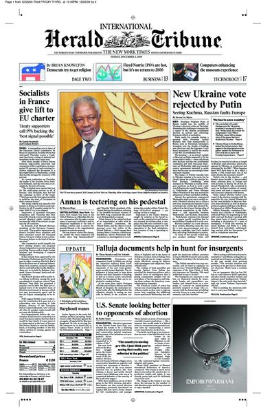 Herald Tribune - The UN Secretary general Kofi Annan in New York on thursday after receiving a report from a high-level panel on security - -