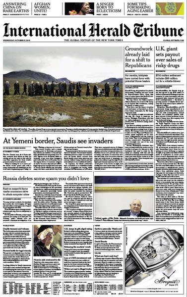 International Herald Tribune - - At Yemeni border Saudis see invaders -