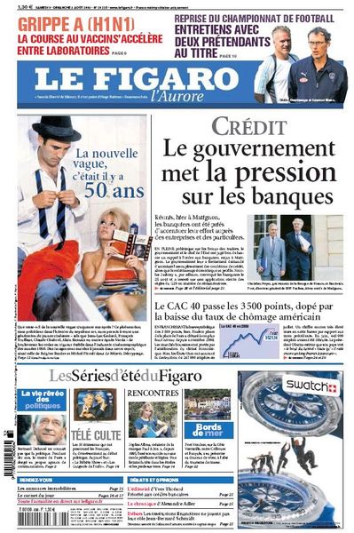 Le Figaro - - Anniversaire la nouvelle Vague a 50 ans / Crédit le gouvernement met la pression su les banques -