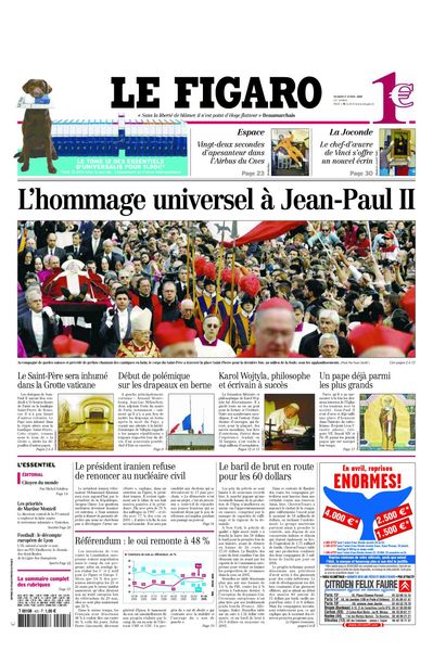 Le Figaro - - L’hommage universel à Jean Paul II - 05 avril 2005