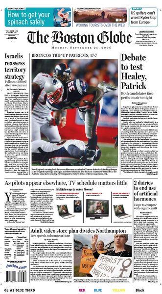 The Boston Globe - - Broncos trip up Patriots 17-7 -