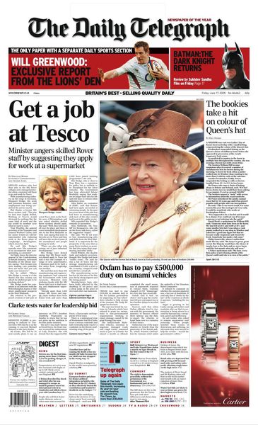 The Daily Telegraph - - The bookies take a hit on colour of Queen’s hat - 17 june