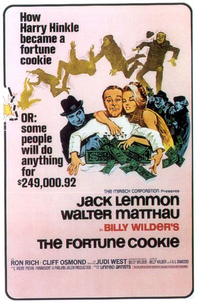 Sortie du film The Fortune Cookie / La Grande Combine avec Jack Lemmon, Walter Matthau, Ron Rich, Judi West , réalisé par Billy Wilder.