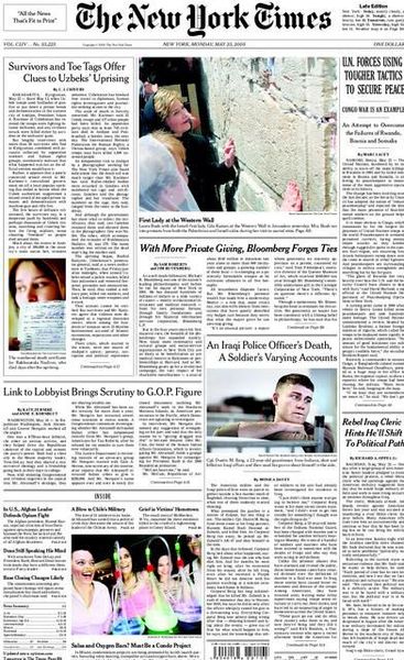 The New York Times - - First lady at the Wall/ US forces using tougher tactices to secure peace -