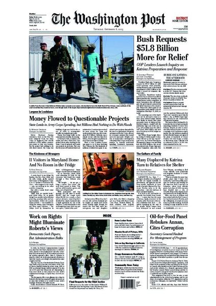 The Washington Post - - Bush requests $51,8 bililon More for relief -