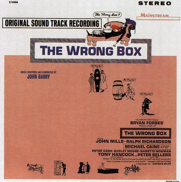 Sortie du film The Wrong Box avec John Mills, Ralph Richardson, Michael Caine, Peter Cook, Dudley Moore , réalisé par Bryan Forbes.