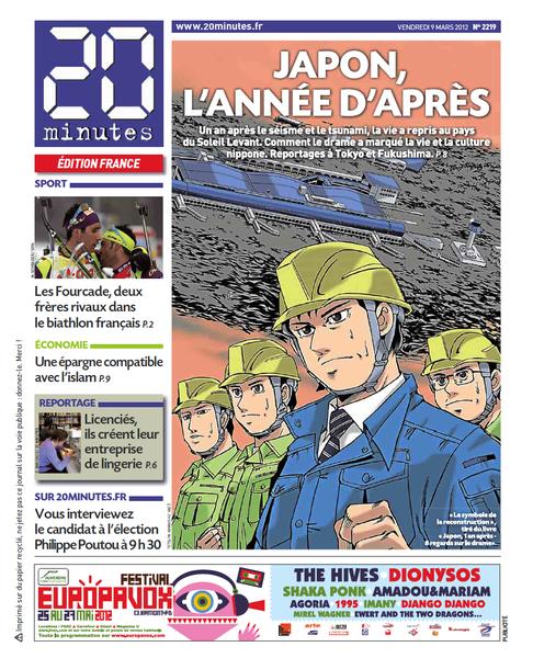 Couverture de : : Titre: 20 Minutes- N°: 2219 Sujet/Couv: Japon l'année d'après Date Parution: 09 mars 2012