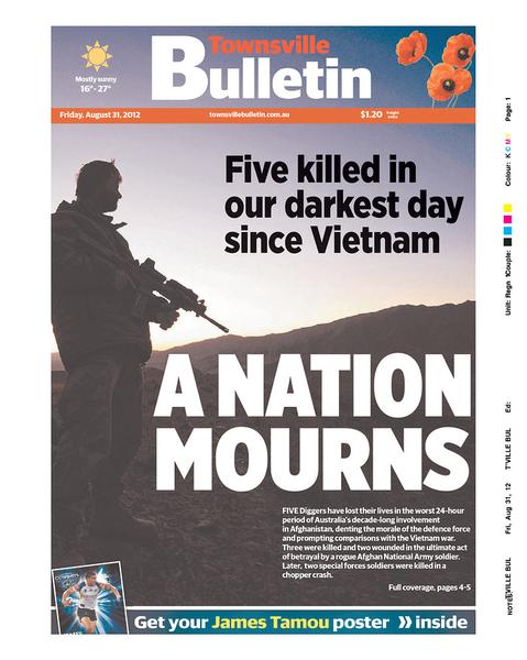 Titre: Townsville Bulletin N°: - Sujet/Couv: Mort de Cinq soldats australiens en Afghanistan Date Parution: 31/08/2012