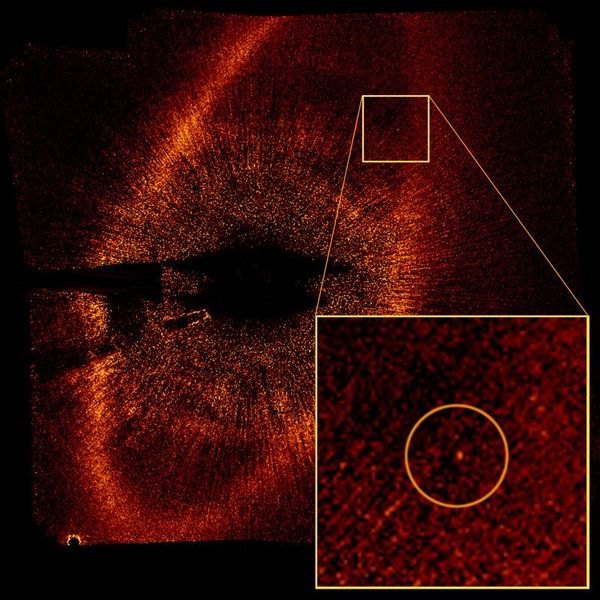 Premier/e Une planète orbite autour de l'étoile Fomalhaut, c'est sûr et certain... foi d'oeil humain. Enfin... le télescope spatial Hubble l'a vue. Et l'a photographiée. Fomalhaut est une étoile très connue des astronomes amateurs, l'une des plus brillante du ciel du sud, dans la constellation du Poisson austral, à seulement 25 années lumière de nous.