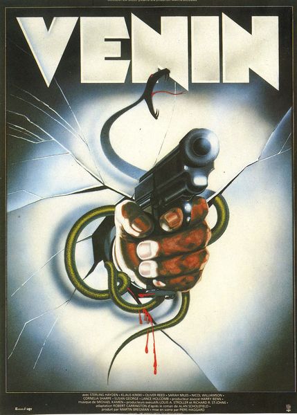 Sortie du film "Venom/ Venin" réalisé par Piers Haggard avec Klaus Kinski, Oliver Reed, Srah Miles, Nicol Williamson, Susan Geo...