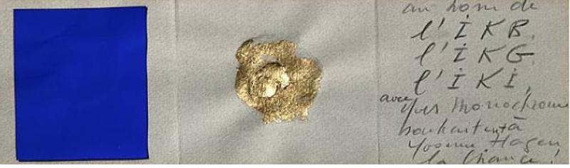 Création : Artiste: Yves Klein Oeuvre: Untitled (IKB with gold leaf) Editeur: - Type: Collage