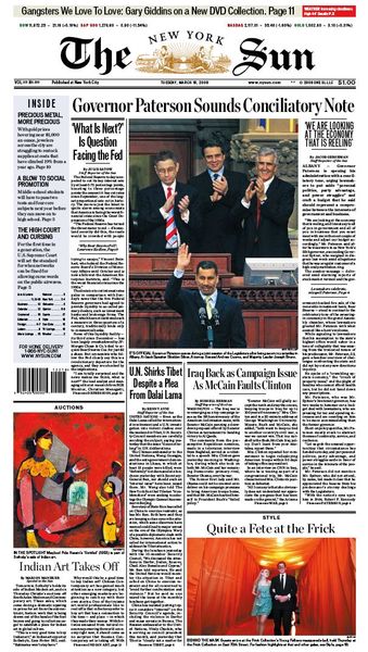 The New York Sun - - Governor Paterson sounds conciliatory note -